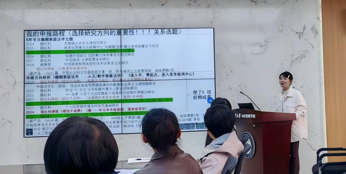 在学院会议室举办国社科项目选题交流活动,邀请刘蓓教授就国社科项目选题等有关事项做报告并展开讨论,就2026年国社科项目申报工作进行布置。学院院级班子成员、中层干部、青年教师及拟申报2026年国社科项目的教师出席本次活动。