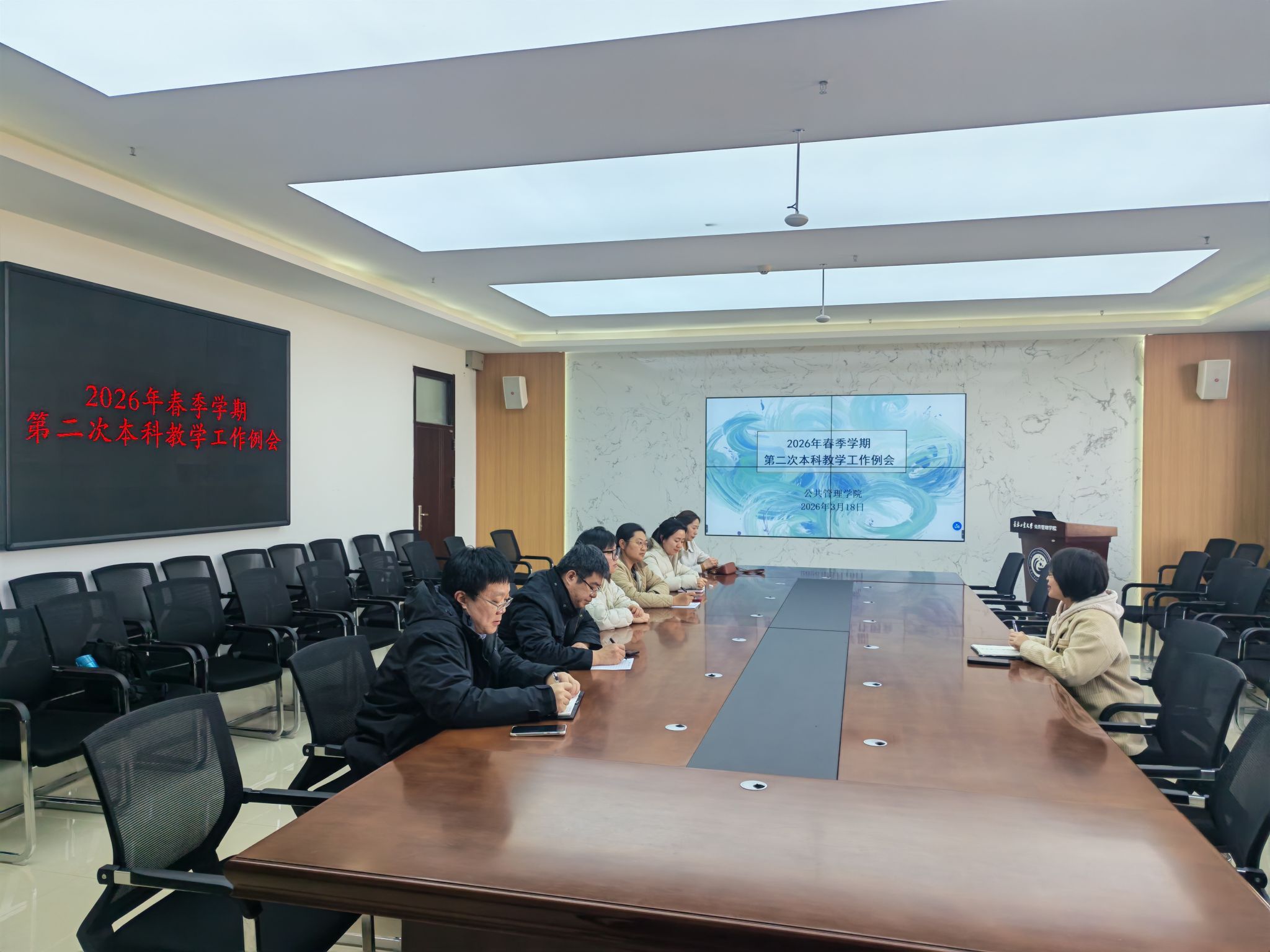 欧洲杯新闻网讯(通讯员 朱琳)2026年3月18日,学院在学院401会议室召开本学期第二次本科教学工作例会。会议由分管本科教学副院长冯娜主持,各系主任、副主任、教学督导、教学秘书参会。会议围绕2026版本科人才培养方案修订工作推进、第二周听课情况反馈及新学期常规教学工作进行部署。